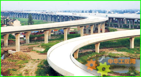 2010年上海世博會重點配套工程———上海A15高速公路日前主線貫通。上海A15高速公路是一條連接浙江與浦東機場的交通大動脈,全長83公裏,是目前在上海東西走向最長的高速公路。圖為A15公路A5立交橋。