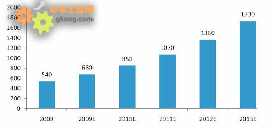 中國工業以太網交換式市場規模(2008-2013)