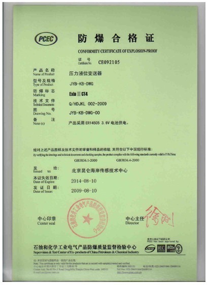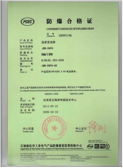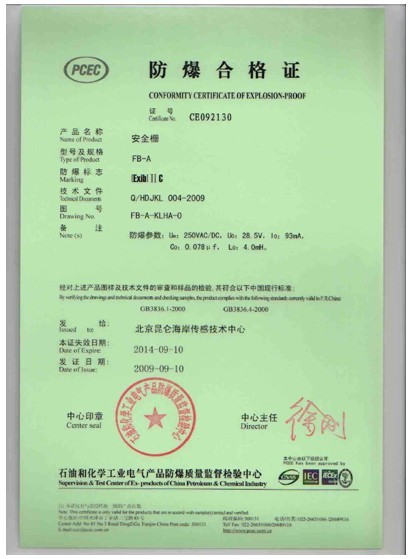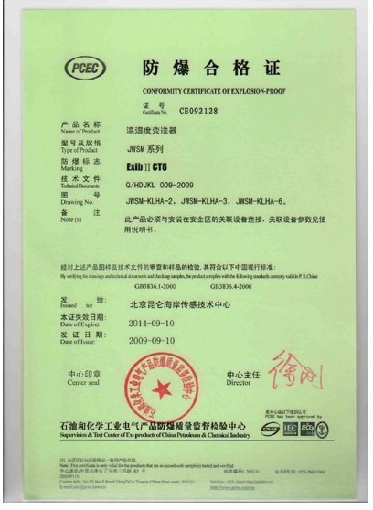 昆侖海岸取得安全柵、溫度變送器、溫濕度,壓力液位等產品的防爆合格證