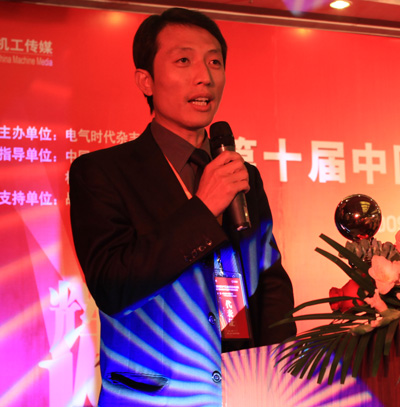 年度中國電氣工業成長力10強企業代表劉憲丹(榮信電力電子股份有限公司副總經理) |