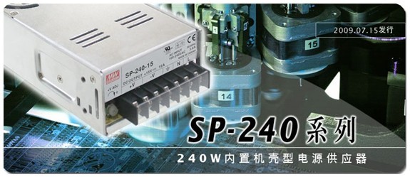 由於推出14年之久的S-240(240W)係列即將於2010年停售,明緯新開發了SP-240係列~ 240W單組輸出具功率因數矯正(PFC)之機殼型電源供應器,做為S-240的直接替換機種。為了使廣大舊有客戶可輕易地直接以SP-240替換,本係列機型於性能尺寸上皆能涵蓋舊有機種S-240之設計,如:底麵固定孔位置一致、風扇位置相同等,而在高度方麵亦減少了15mm,可讓使用者輕易地延用原係統機構以免除須變更設計的困擾。另SP-240係列的推出可填補明緯機殼型PFC家族200W~320W的產品間隙,使得AC/DC單組輸出機殼型具PFC之電源產品線趨於完整,目前明緯可提供75W/100W/150W/200W/240W/320W/480W/500W/750W多樣化機種供不同瓦數需求之使用者選用。