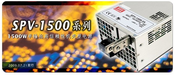 明緯新推出了具可大範圍調整輸出電壓與並聯功能之1500W內置機殼型交換式電源供應器~ SPV-1500係列。本產品擴大了原RSP-1500係列僅能調整70~100%額定輸出電壓範圍之極限,可藉由外加1~6VDC的控製電壓來設定輸出電壓於20~120%之原額定值,大大地增加了終端係統設計使用上的彈性,使SPV-1500適合用於需求多種輸出電壓變換之設備。另為了滿足係統使用者更大瓦數之需求,SPV-1500設計有並聯功能,可讓輸出瓦數最高提昇至4500W。