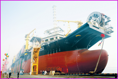 11月7日,世界上日處理燃氣能力最強的海上浮式生產儲油船(FPSO)被大連中遠船務集團正式命名為“斯達帝德·桑托斯MV20”。這是該集團成功改裝的第四艘FPSO,由此,中遠船務成為中國第一大FPSO改裝企業。這艘FPSO由超大型油輪(VLCC)改裝而成,長334米、寬51米,日產油量約為3.5萬桶,同時可儲存約70萬桶油,設計日處理燃氣能力1千萬立方米/天。