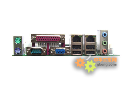 主板提供了豐富IO接口,1個VGA顯示接口、1個COM接口(另3組為擴展插針);還提供常規PS/2鍵鼠接口、2個RJ45網卡接口、4個USB2.0接口和高保真6聲道音頻接口,以滿足行業客戶基本需求。