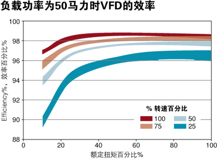 沒有人會質疑,變頻驅動器(VFD)在zai眾zhong多duo負fu載zai和he轉zhuan速su各ge異yi的de應ying用yong實shi例li表biao現xian出chu的de令ling人ren印yin象xiang深shen刻ke的de節jie能neng作zuo用yong。除chu了le能neng節jie省sheng動dong力li和he能neng量liang外wai,變bian頻pin驅qu動dong器qi的de效xiao率lv還hai有you另ling一yi個ge受shou人ren關guan注zhu的de原yuan因yin,與yu電dian動dong機ji類lei似si,驅qu動dong器qi在zai部bu分fen負fu載zai的de工gong作zuo狀zhuang態tai下xia,其qi效xiao率lv會hui出chu現xian大da幅fu的de下xia降jiang。目前電動機已經在高能效方麵領先了一步,製定出了測試認證的流程和標準。而要想更全麵地看待“電動機係統”的效率,就必須認識到VFD的影響。