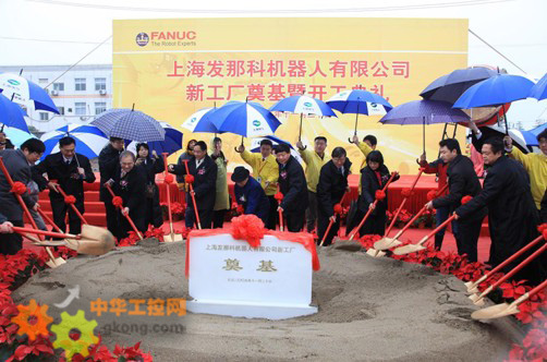受到廣泛關注的上海發那科機器人新工廠項目於2009年11月20日(ri)在(zai)上(shang)海(hai)寶(bao)山(shan)區(qu)工(gong)業(ye)園(yuan)區(qu)舉(ju)行(xing)了(le)盛(sheng)大(da)的(de)奠(dian)基(ji)暨(ji)開(kai)工(gong)儀(yi)式(shi)。以(yi)副(fu)市(shi)長(chang)艾(ai)寶(bao)俊(jun)先(xian)生(sheng)為(wei)首(shou)的(de)上(shang)海(hai)市(shi)領(ling)導(dao),以(yi)名(ming)譽(yu)會(hui)長(chang)稻(dao)葉(ye)清(qing)右(you)衛(wei)門(men)先(xian)生(sheng)為(wei)首(shou)的(de)發(fa)那(na)科(ke)株(zhu)式(shi)會(hui)社(she)各(ge)級(ji)領(ling)導(dao)、以董事長徐建國先生為首的上海電氣集團各部門領導、以區委書記呂民元先生為首的寶山區各部委領導,紛紛出席並發言。
