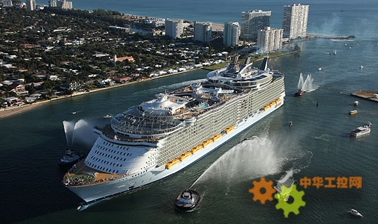 “海洋綠洲”號是皇家加勒比遊輪公司最新建造的巨型豪華遊輪,剛剛在美國邁阿密交付使用。它的第一次環加勒比海商業航行將於今年12月進行。“海洋綠洲”號耗資約12億美元、重達22萬噸。這艘世界上最大的豪華遊輪共有16層甲板,高出水麵65米,內部設有電影院、餐廳、健身俱樂部、溜冰場和一座裝飾了各種雕塑和數千株植物的露天公園。遊輪總長360米,其長度遠遠超過了紐約克萊斯勒大廈的高度。