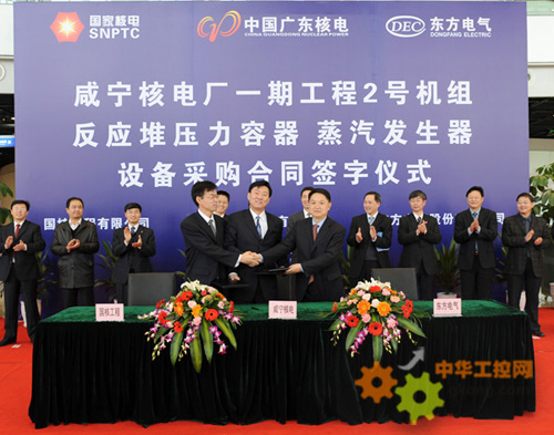 12月2日,鹹寧核電廠一期工程2號機組壓力容器、蒸汽發生器設備采購合同簽字儀式在東方電氣科技展示廳舉行。