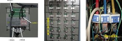 接線方式為端子接線。三相電壓為直接接入,三相電流通過主線互感器接入,通訊接口為RS485總線方式,供電電源為AC220V。