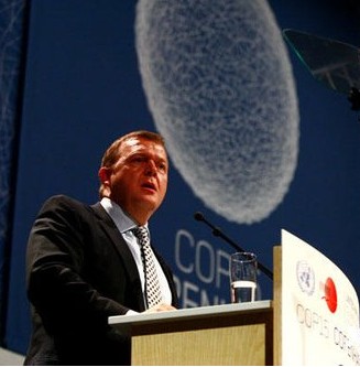 12月7日,在丹麥首都哥本哈根,丹麥首相拉斯穆森致開幕辭。