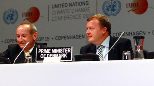 12月7日,在丹麥首都哥本哈根,《聯合國氣候變化框架公約》秘書處執行秘書德博埃爾(左)與丹麥首相拉斯穆森出席開幕式。