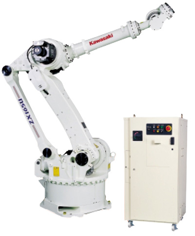 點焊機器人Z係列為重型機器人,最高負載能力可以達到200kg。Z係列擴大了到達範圍,縮小了死區,拓寬了工作範圍。另外,川崎專利的混合鉸接結構可以允許以低能耗實現手臂向後翻。Z係列的全部型號都配置了小底座、內置氣管、配號線的電磁閥以及用於叉車運輸的叉套,可以簡化在狹窄空間內的安裝。其中ZX165U型機器人可以通過在用戶工廠添加簡單的硬件和軟件,升級為更快或更高負載能力的機器人。這樣就能夠使得生產線變化更容易、更經濟,而無需在設計階段進行太過精確的選型。