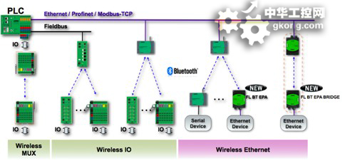 菲尼克斯電氣的無線I/O係統可以滿足以上這些要求。例如,它可以臨時性集成到I/O係統中,作為信息交換的工具,或者取代滑動環和拉鏈。無線I/O模塊可以提供IP20和IP67防護等級,使用標準的藍牙無線技術實現穩定的數字量和模擬量信號到基站的傳輸。它不僅可以接受過程數據,而且可以傳輸I/O模塊的狀態和無線連接質量和條件的診斷信息。所有診斷數據也可以經由以太網中的總線耦合器傳輸。