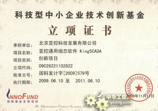 在科技部創新基金十周年慶典隆重召開之際,亞控科技通用組態軟件KingSCADA憑借其易用、高效、穩定、可靠的產品質量和多項專利技術榮立科技部創新項目。