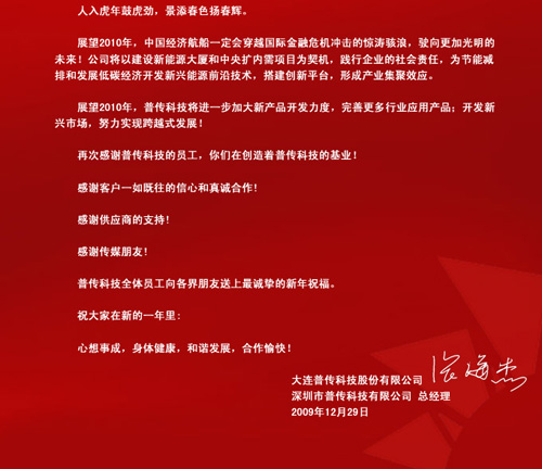 普傳科技張海傑總經理2010年新年獻辭