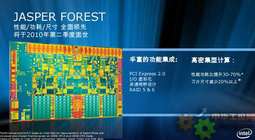 而將於2010年第二季度發布的基於Nehalem架構的JASPER FOREST處理器 ,除了集成Nehalem當中已經有的內存控製器之外,把PCI Express也集成進來,而且還增加了非透明橋設計。