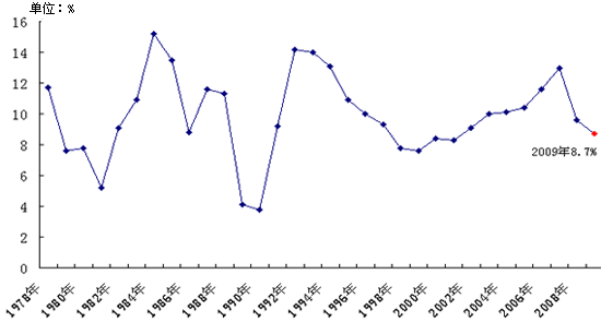 2009年是新世紀以來中國經濟發展最困難的一年。受益於一攬子經濟刺激的實施,“V”形反轉的中國經濟將金融危機衝擊帶來的負麵影響減到最小。今年前三季度中國GDP同比增長7.7%,第三季度GDP同比增長8.9%,全年經濟實現增長8%在多個場合都被證實“已無懸念”。