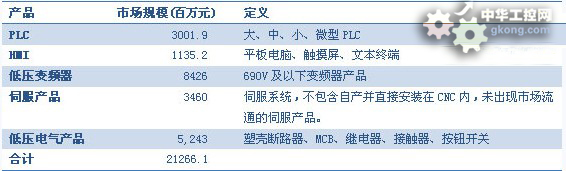 本報告中所指的自動化產品包括PLC,HMI,變頻器,低壓電器以及伺服產品。