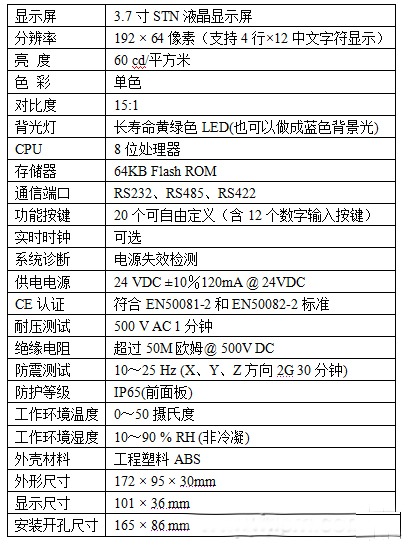 OP0401文本顯示器產品規格: