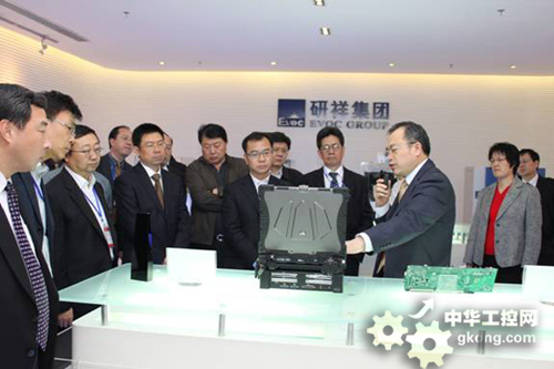 在研祥智能總經理孫偉等陪同下,考察團一行參觀了公司榮譽室、產品展示廳,孫偉總經理介紹了公司產品研發和應用情況。
