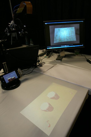智能觸控技術為移動計算提供了一個新的人機交互界麵。移動3維交互場(Mobile Surface)通過使用攝像投影傳感係統能夠將任意的,比如辦公桌麵、餐台、茶幾等表麵或一張普通的紙變成可觸控的平台,從而讓用戶能夠在移動設備,如手機上,體會到和微軟Surface類似的智能觸控體驗,而且這項技術在平麵多點智能觸控的基礎上,還能夠為移動設備提供3D空間的自然交互。比如用戶將手機的內容投影到任意桌麵,可以觸控或3D的(de)手(shou)勢(shi)實(shi)現(xian)交(jiao)互(hu)操(cao)作(zuo)。而(er)且(qie)這(zhe)個(ge)係(xi)統(tong)還(hai)能(neng)實(shi)時(shi)捕(bu)獲(huo)放(fang)入(ru)投(tou)影(ying)區(qu)域(yu)物(wu)體(ti)表(biao)麵(mian)的(de)數(shu)據(ju)模(mo)型(xing),從(cong)而(er)為(wei)增(zeng)強(qiang)現(xian)實(shi)應(ying)用(yong)提(ti)供(gong)了(le)支(zhi)持(chi)平(ping)台(tai)。移(yi)動(dong)自(zi)然(ran)交(jiao)互(hu)“麵”能夠為手機/移動設備提供一個自然的交互平台,可以使你隨時隨地的與你身邊的數字信息進行自然交互。