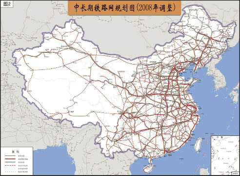 在鐵道部公布的《中長期鐵路網規劃(2008年調整)》(見圖2)中,截至2020年,將規劃建設“四縱四橫”等客運專線以及經濟發達和人口稠密地區城際客運係統,客運專線1.6萬公裏以上。這一龐大的建設計劃總投資預計超過2萬億元,蓄勢待發的中國高鐵前途光明。