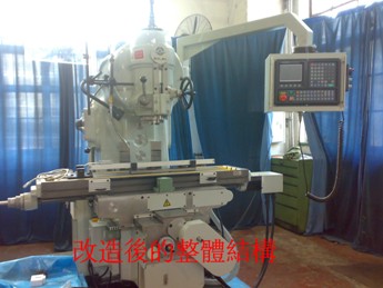 以yi中zhong達da電dian通tong對dui普pu通tong銑xi床chuang數shu控kong化hua改gai造zao為wei例li,實shi質zhi是shi在zai原yuan機ji床chuang基ji礎chu上shang增zeng加jia數shu控kong係xi統tong控kong製zhi裝zhuang置zhi,使shi其qi具ju有you一yi定ding的de自zi動dong化hua能neng力li,從cong而er提ti高gao生sheng產chan效xiao率lv、保證產品質量、實現預定的加工工藝目標以及解決複雜零件的加工問題。中達電通將1台數控係統(PUTNC-H4PLS-M)、3套伺服係統(ASD-A1521-AB和ECMA-E31315PS/FS)組成全套控製係統,對機床進行數控化改造。