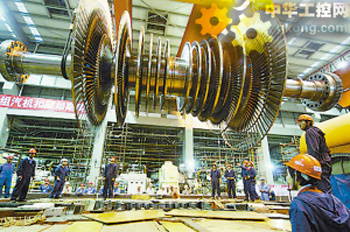 華能海門電廠1號hao機ji組zu日ri前qian投tou入ru商shang業ye運yun行xing。該gai電dian廠chang采cai用yong的de是shi百bai萬wan千qian瓦wa超chao超chao臨lin界jie燃ran煤mei機ji組zu,屬shu於yu節jie能neng環huan保bao機ji組zu,集ji中zhong體ti現xian了le當dang前qian我wo國guo在zai大da型xing火huo力li發fa電dian設she備bei研yan發fa上shang的de成cheng果guo和he技ji術shu方fang向xiang。60萬千瓦級以上的大型火電機組,未來將越來越多地在國內火電廠應用。圖為施工人員正在安裝機組轉子。華能集團 提供
