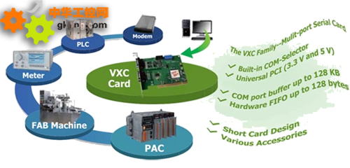 VXC-112AU串行端口通信卡提供2個RS-232串行端口並且支持3.3V/5V的PCI總線。每個串行端口都有128-byte的硬件FIFO,通訊速度最高可達115200 bps。