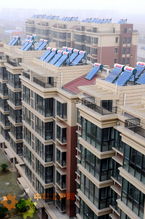 江蘇連雲港的新建小區都安裝了太陽能熱水器。