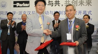 中國,上海(2010年5月11日) 派克漢尼汾與同濟大學機械工程學院在同濟大學簽署同濟大學-派克漢尼汾合作合約,並為新落成的同濟大學-派克漢尼汾傳動與控製實驗室揭幕。