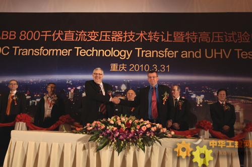重慶,2010年3月31日——全球領先的電力和自動化技術集團ABB,今天在此簽署協議,將800千伏高壓直流變壓器技術轉讓給在華企業——重慶ABB變壓器有限公司。同時,ABB舉行了重慶特高壓試驗中心的落成典禮。