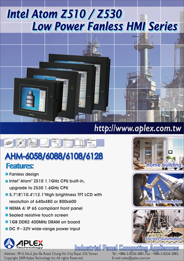 品富公司推出英特爾ATOM 低功耗無風扇人機界麵(AHM-6XX8係列)