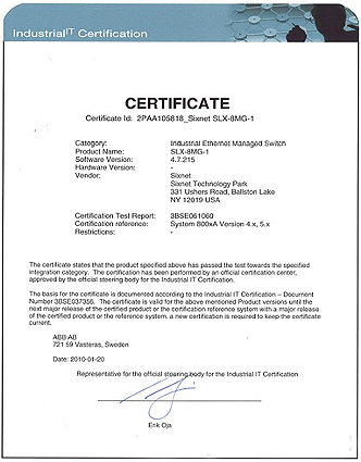Sixnet通過 ABB 驗證之前,該公司曾在2010年1月宣布其 EL228 工業以太網交換機平台獲得 KEMA(荷蘭電工材料協會)的認證。經 KEMA 測試的產品能滿足電力和能源行業專門提出的嚴格的環境和冗餘標準,包括 IEC61850 和 IEEE1613。