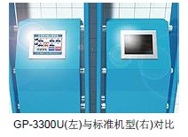 如右圖所示:在光線較強的環境下,兩款人機界麵顯示效果對比,左側為高亮度、低反射機型GP-3300U,右側為標準機型。GP-3300U減少了光的漫射和反射,因此顯示效果更清晰。