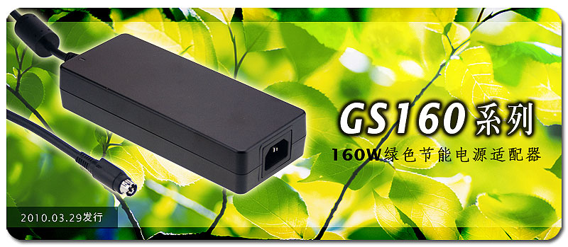 明緯於環保節能電源適配器(Green adaptor)產品線新增了160W機種 ~ GS160係列,搭配已推出的GS06(6W)、GS12(12W)、GS15(15W)、GS18(18W)、GS25(25W)、GS40(40W)、GS60(60W)、GS90(90W)、AS-120P(120W)、GS220(220W)等係列,使得明緯AC/DC環保節能電源適配器產品線趨於完整,現在已可提供6~220W多樣化機種供不同瓦數之消費性電子產品搭配使用。本係列設計上符合世界最新電源適配器節能規範要求,包含歐盟ErP最終階段、能源之星、美國聯邦政府立法要求的新能源法(EISA 2007: Energy Independence and Security Act of 2007)與紐澳MEPS(Minimum Energy Performance Standards)等。本係列具有極低之待機消耗瓦數(小於0.5W)及最高達94%之超高工作效率,在待機或正常工作下皆可達到節約能源之目的,符合歐、美、紐、澳、韓等國最新法規要求與綠色節能的市場趨勢。