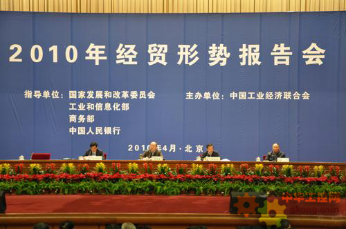 4月9日,工業和信息化部部長李毅中出席2010年經貿形勢報告會,並作“當前我國工業發展的若幹重大問題”的專題報告。本次會議由中國工業經濟聯合會主辦。國家發展和改革委員會、商務部、中國人民銀行等部門負責同誌出席會議並講話。有關行業骨幹企業、重點行業協會以及相關政府部門負責人參加了會議。