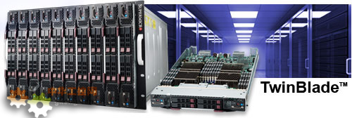 基於 SBI-7226T-T2 刀片的Twinblade 服務器能夠在7U 的空間裏提供20 個雙路的刀片節點。在同一個7U 空間裏再加上2 個40Gb/s Infiniband, FCoE 或者10GbE 交換機和2 個1/10GbE 交換機使得Twinblade 能夠提供業界最高的I/O 吞吐和擴展性。同時在使用了新一代6 核或8 核XEON 處理器後,最適合高性能計算,數據中心,企業和雲計算等應用領域。