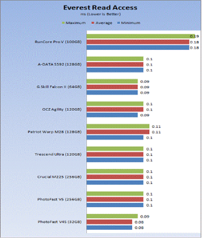 在測試中,我們發現讀訪問時間是Barefoot的兩倍。Pro V速度依然大幅快於傳統硬盤驅動器,我相信新的固件將會降低訪問時間。