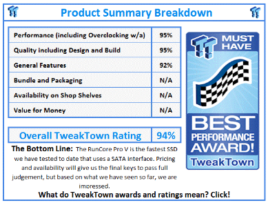 眾所周知,源科Pro V係列產品速度足以滿足消費者的需要,但在許多情況下受到SATA II甚至是處理器速度的限製。該款產品在4K書寫測試的表現是我們測試過的迄今為止最高的,非常驚人。可以說地球上的每個SSD愛好者都希望得到這款RunCore固態硬盤!