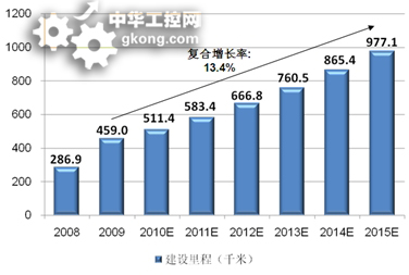 截至到2009年底,中國城市軌道交通總共運營裏程達1,038.7公裏,位於美國之後,居全球第二。根據Frost & Sullivan的預測,中國在今後的5年內,每年的建設裏程都將超過500公裏,並維持13.4%的年複合增長率。這就意味著,中國將在2012年超過美國成為全球最大的軌道交通市場。