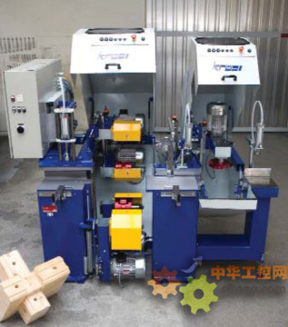 木工機器在木料區用一個夾具進行手動送料,然後在PLC控製下機器進行一係列程序,為小木屋/圓木屋鑽出並銑出互鎖角接接頭,平均的切割時間僅需15秒。
