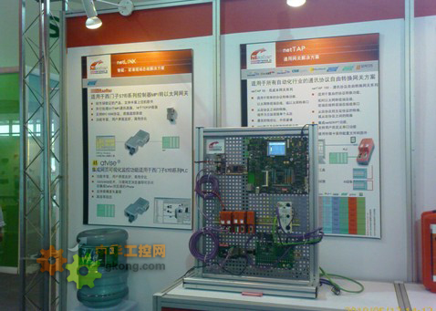 本ben次ci展zhan會hui赫he優you訊xun中zhong國guo一yi如ru繼ji往wang的de給gei廣guang大da自zi動dong化hua用yong戶hu展zhan示shi了le德de國guo赫he優you訊xun全quan係xi列lie最zui新xin產chan品pin,並bing在zai現xian場chang通tong過guo生sheng動dong形xing象xiang的de動dong態tai演yan示shi,闡chan述shu赫he優you訊xun的de產chan品pin和he典dian型xing應ying用yong。其qi中zhong一yi個geDemo演示了赫優訊3個層次的產品,包括赫優訊PLC產品——netPLC、網關產品——NT100、嵌入式模塊netIC產品。即通過赫優訊集Profibus通訊與控製於一體的netPLC(可通過STEP7、3S的CoDeSys或KW的ProConOS編程)作為控製器,通過NT100網關,將Profibus轉換成CANopen協議,從而連接CANopen設備(DIL-32嵌入式通訊模塊netIC)。