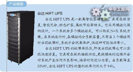 模塊化UPS都是冗餘係統,例如台達HIFT容錯UPS可由5個20kVA的模塊組成80kVA N+1係統,其可靠性和可用性遠高於80kVA單機UPS。如果用單機UPS組成同樣性能的係統,那麼需要用兩台80kVA單機組成1+1冗餘係統,或者用40kVA的單機組成2+1係統,還可以采用20kVA的單機組成4+1係統。但是不管采用哪種單機UPS的組合方式,把單機設備的價格和後備冗餘係統的價格加起來,其總體價格並不比模塊化UPS便宜。