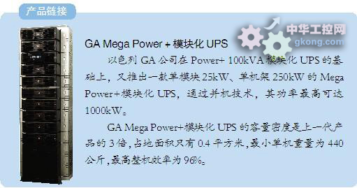 目前,GA單機架模塊UPS的輸出功率可以達到250kW,4台並聯可以達到1000kW輸出功率。在國內,GA已經有三四十個模塊並聯應用的成功案例。