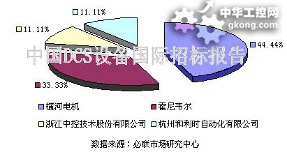 製造商方麵,1季度共有4家公司的產品參與了我國DCS設備國際招標並成功中標,數據顯示,項目數量最多的是橫河電機,占比總項目量的44.44%,其次是霍尼韋爾,占比33.33%,浙江中控技術股份有限公司和杭州和利時自動化有限公司項目量占比相同,均為總項目量的11.11%。