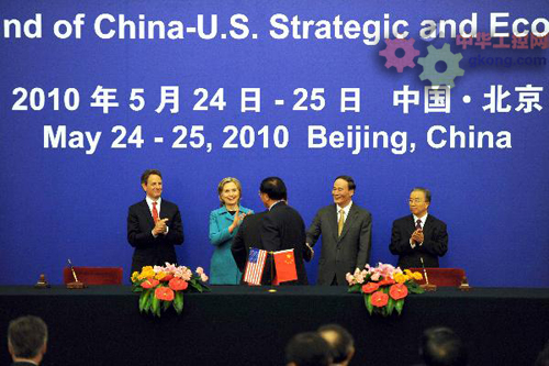 中國國家主席胡錦濤特別代表國務院副總理王岐山和國務委員戴秉國,美國總統奧巴馬特別代表國務卿希拉裏·克林頓和財政部長蒂莫西·蓋特納等參加本輪對話的兩國高官出席了簽字儀式。