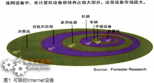 在1999年物聯網概念就開始提出,實際上就是互聯網向物聯網的轉移,要上物聯網的設備是1012數量級,非常巨大。但我們現在的Internet網的利用率該產品還很低,隻有2%~5%。目前嵌入式設備需要聯成網絡,但嵌入式設備一般無瀏覽器,需要建立信息平台,實現低端和高端的連接。