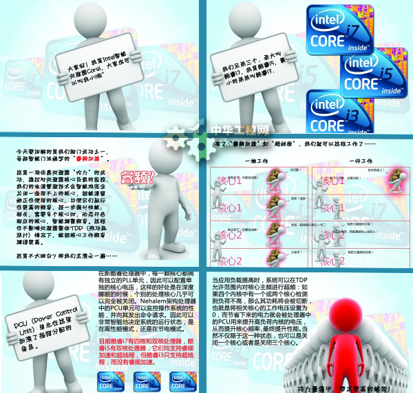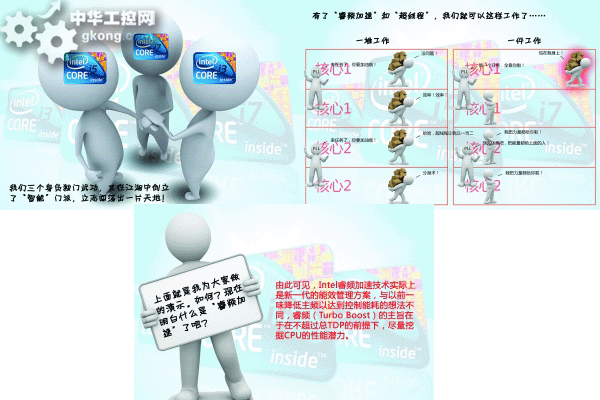 這些都是得益於新酷睿的一些獨特的智能特性——獨特的睿頻加速技術、超線程技術、高清顯卡、智能緩存以及32納米智能架構。