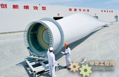 長達55.5米的國內迄今最大最長的風力發電機葉片,近日在位於江蘇連雲港經濟技術開發區的中國建材集團中複連眾公司下線。